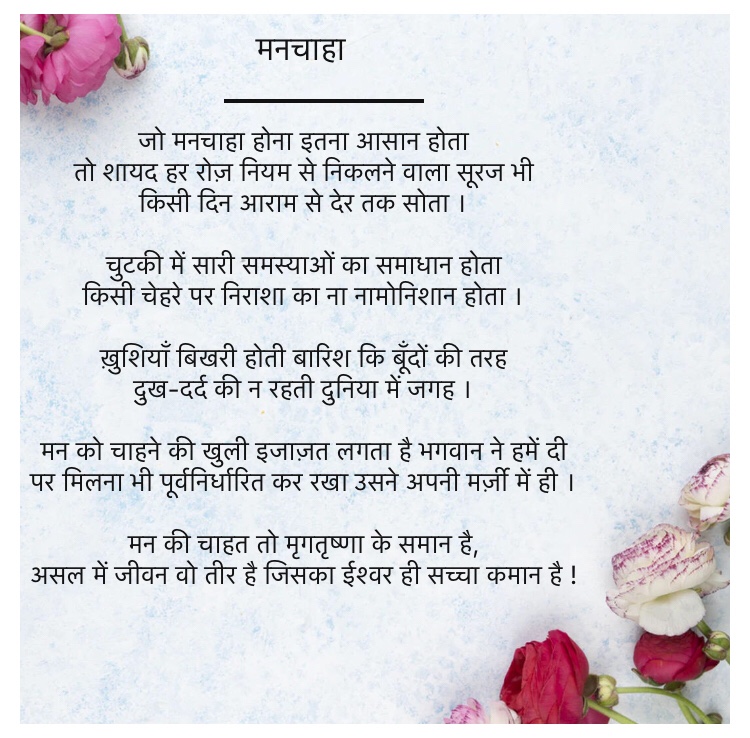 A lawyer by qualification and a writer and poetess at heart sums up for who I am. I love to express, connect, communicate and learn. I believe life is a continuous process of evolving and so we all must never stop learning.